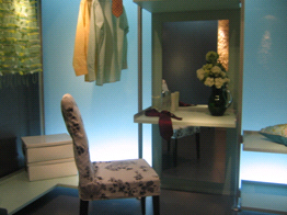 葡萄綠:田園梳妝不乏知性 隨天氣持續(xù)升溫,春裝也被夏裝取代,衣帽間自然也應(yīng)換一種表情,果綠和蛋清色成為私秘空間的色彩首選。本案中,博洛尼設(shè)計(jì)師將梳妝臺(tái)鑲嵌在特質(zhì)玻璃墻中,配以淺綠色的家居配飾,頗具田園般浪漫情調(diào),恬淡與知性氣質(zhì)悄然蔓延。