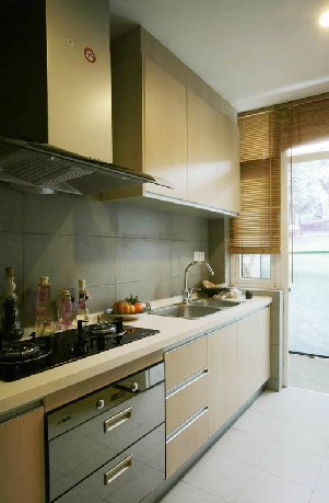 當清晨的陽光流轉在廚房時,白色與原木色的組合與整個居室的色調搭配和諧統(tǒng)一,純實木的櫥柜打造,悠悠的古韻流露在本木色的組合里,讓人可以感受到大自然的氣息。白色是一種永恒的顏色,用它來營造氣氛,讓看似狹小的空間有一種透視的效果,有縱深感。