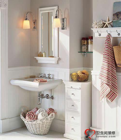首先,對(duì)于衛(wèi)生間墻面,應(yīng)做到墻內(nèi)不省墻外省。對(duì)于埋入墻內(nèi)的電線和水管,要選擇達(dá)到國家標(biāo)準(zhǔn)的、品質(zhì)高的產(chǎn)品。因?yàn)檫@些電線和水管一旦出了問題,要修理代價(jià)會(huì)很大。而掛在墻外的梳妝鏡、燈具、用品籃等,則可以選擇相對(duì)便宜的,一是修理更換很方便,二是使用時(shí)間長了也有更換必要,還可以很方便地改變衛(wèi)浴的整體風(fēng)格。