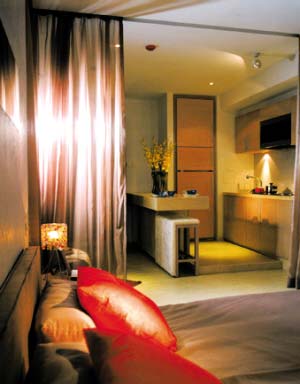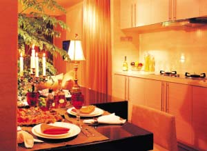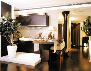 2.廚房就在客廳旁,用一個(gè)頗有個(gè)性和意境的屏風(fēng)分隔,既節(jié)省了空間,又調(diào)動(dòng)出整個(gè)房子的味道。