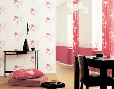 壁紙的種類非常多,花紋和色彩也很豐富,能營造多種風(fēng)格。目前市場上有錦緞墻紙、木、竹、草紡織物浮雕墻紙、布藝紋理墻紙、兒童卡通墻紙等等,品種層出不窮。色澤有閃光型的,也有亞光型的。因此,在確定圖案后,要反復(fù)對比各種色彩組合效果,恰當(dāng)?shù)纳蔬\用,配合家具的色調(diào)進行和諧搭配,便能讓壁紙充分展現(xiàn)其色彩的無限魅力。如果壁紙表面臟了可以用濕布直接擦拭,舊了可以揭下來換新的,非常方便。