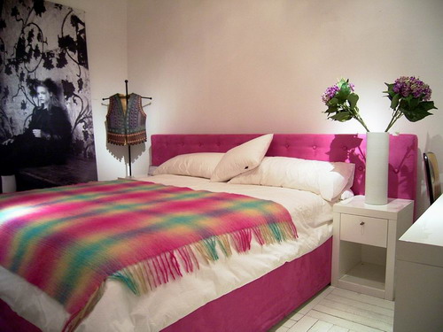 經(jīng)過一季蕭索的嚴冬,臥室難免缺乏亮點、黯淡沉重。博洛尼設(shè)計師利用桃紅色嫵媚和嬌艷的特點,