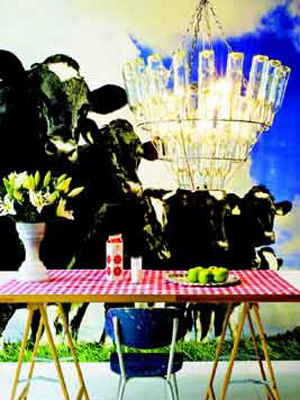 黑色的牛角吊燈有未來主義的特征,追求挺直的幾何造型及光滑的流線形式,同時又簡潔明快,酷酷的感覺是哥特一族的最愛。燈體為紅色的軟塑料材質(zhì),均衡地折彎而成,柔和的白色巧克力底座中和了熱烈感,使氛圍轉(zhuǎn)變?yōu)榛饦溷y花般的甜蜜。白色羽毛通過多層次的連接制造出流蘇般的效果,整體感覺溫馨浪漫,既自然又具有很強的裝飾功能。