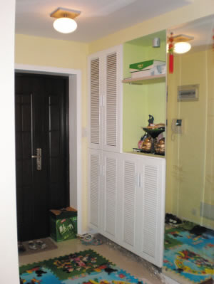 概要: 百葉門 慣用做法:采用百葉門。這是一般人家裝修玄關鞋柜的慣用手法,就算業(yè)主不主動說,十個木工有九個都會按照慣性思維做成百葉門。優(yōu)點:透氣性好,裝飾效果強。缺點:由于百葉是有縫隙的,鞋子放在里面很積灰,不干凈的鞋子擺里面,臭味會竄出來,如果客人來了,一進門就聞到不潔的味道,對這個家的印象分就會大打折扣。