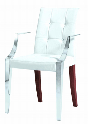 這把座椅雖然帶給人們的整體視覺感受是種脫離塵囂般的純凈高貴,但組成座椅的不同材質(zhì)卻令人在細(xì)細(xì)品位時得到迥異的心靈觸動--白色真皮烘托出一種嫻靜的高雅,同時不失溫和與親近;銀色金屬渲染出一種低調(diào)的張揚(yáng),帶著中性與前衛(wèi)。