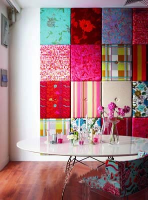 布藝的流行緊跟時裝的腳步,走在家居裝飾的前沿。軟裝對居室空間的改變更易操作且效果明顯。用布藝、海綿和裝飾扣制作的主題墻顏色鮮艷而時尚,可以結(jié)合不同的家具風(fēng)格和空間功能適時更新,讓素白的墻面煥發(fā)新的光彩。從色彩、圖案與肌理等方面為空間的造型做鋪墊。