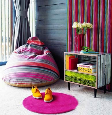 在纖細條紋的漸變中,色彩的明度、飽和度也隨之改變。亮粉與天藍、淡粉與橘黃的碰撞,此刻呈現(xiàn)的是愈發(fā)突出的層次感。從墻壁裝飾的條紋布藝到舒適的條紋沙發(fā),玩出花樣的條紋撞色,營造出的卻是無法替代的雅致。