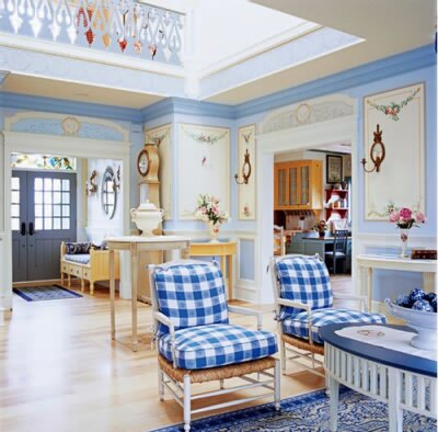 1、方格、條紋圖案的棉質(zhì)布藝色調(diào)以藍(lán)色或紅色搭配白色居多,看上去十分質(zhì)樸,深受古斯塔夫時期人們在家居裝飾方面的喜愛。垂直方向小碎花圖案的壁紙在瑞典家居中也非常流行。