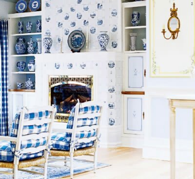 1、藍(lán)白相間的貼磚壁爐是瑞典人家度過漫長冬天的基本保障,客廳壁爐中式風(fēng)格的代夫特瓷磚與其相似,延續(xù)了瑞典風(fēng)格中的藍(lán)白色彩搭配。
