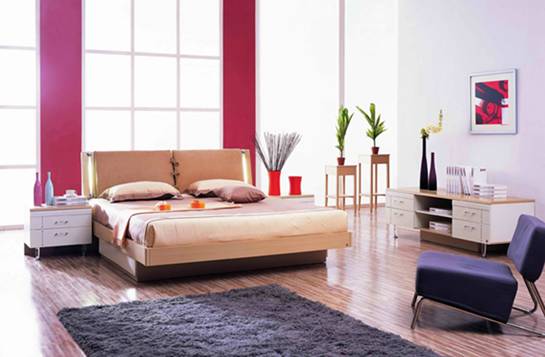 ☆如果習(xí)慣以床為娛樂中心,應(yīng)該在裝修時就精心設(shè)計床背后墻面的花色,使之與家具統(tǒng)一,形成完整的視覺效果。