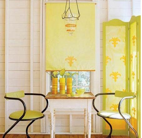 紙質(zhì)遮光簾代替了不環(huán)保的乙烯材質(zhì)窗簾。去掉上部的滾筒和底部的橫木,用卸下來的窗簾做模板比著印花紙剪裁。最后把木條漆上和紙搭配顏色,晾干,將紙釘在上面。