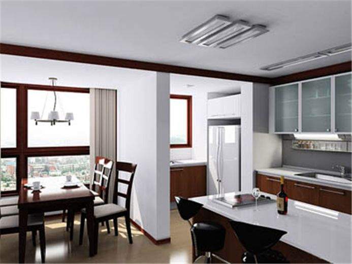 廚房是個(gè)潮濕易積水的場所,所有表面裝飾用材都應(yīng)選擇防水耐水性能優(yōu)良的材料。地面、操作臺(tái)面的材料應(yīng)不漏水、不滲水。墻面、頂棚材料應(yīng)耐水、可用水擦洗。櫥柜內(nèi)部設(shè)計(jì)的用料必須易于清理,最好選用不易污染,容易清洗、防濕、防熱而又耐用的材料,像瓷磚、防水涂料、PVC板、防火板、人造大理石等都是廚房中運(yùn)用得最多的安全材料。