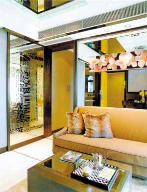 概要: 這是一套面積不大的住宅,總共才65平方米,但是設(shè)計(jì)師巧妙劃分空間,采用開放式布局,以深色作主調(diào),大量運(yùn)用鏡面,令空間呈現(xiàn)的面積比實(shí)際面積增大許多。沙發(fā)后墻懸掛起一幅清雅的飾畫,令鏡面不會(huì)顯得單一 以天然質(zhì)感的石、木及鏡子等主要物料,營(yíng)造出時(shí)尚的生活品位??蛷d和餐廳以銀箔紙皮石及白色地臺(tái)相間,設(shè)計(jì)極具氣派。天花鑲嵌鏡面。