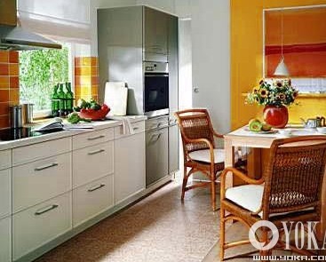 廚房中總是有些小角落。稍大的小角落,主婦們會(huì)擺一張小桌子,或幾把便于就餐時(shí)用的椅子,設(shè)計(jì)師建議選用折疊或長(zhǎng)度可調(diào)節(jié)的連柜餐桌,不用時(shí)將其折疊,而可疊加的椅子,則可存放于柜內(nèi)或桌底;稍小的角落安置推拉式高柜,這種儲(chǔ)藏能力很強(qiáng)的柜體大大減少了對(duì)空間的需求。