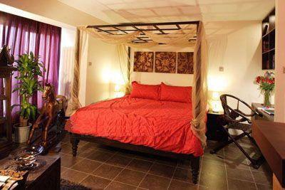 床占用了房間大片面積,成了名副其實(shí)的家居主角,是直接買的東南亞的進(jìn)口成品床,但上邊的鐵架子不是很好,已經(jīng)幫她選了一款紗,暗紫色的,在頂部做成帷幔,束在四個(gè)床柱上,效果應(yīng)該不錯(cuò)。