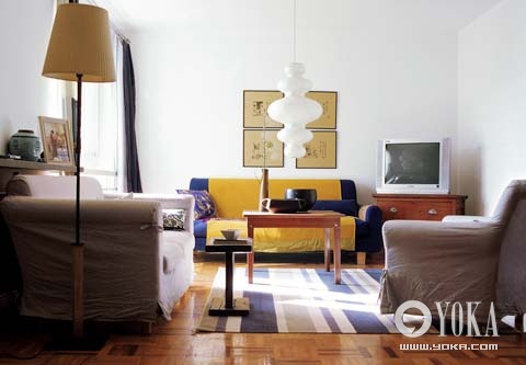 面對(duì)這樣一個(gè)清靜疏朗的家,很難相信張葳是個(gè)酷愛往家“暴斂”的人,一個(gè)典型的心靜而腳步不停的人。她喜歡用旅行中的收藏記錄故事,所以她家的寶貝可以說是斑斕各異,有荷蘭的瓷片、馬耳他的陶罐、非洲的小鳥、英國的燭臺(tái)……還有各種各樣質(zhì)地的布藝更是不勝枚舉,每一樣都是她割舍不了的珍愛。這樣看來,張葳家的內(nèi)容其實(shí)并不比任何一個(gè)人家少,甚至是更多。但它們的存在就像天上的流云一樣自然,如雪歸大地一樣不分彼此。荷蘭的藍(lán)白色瓷片與她收集的中式青花小碗在白色的隔板上清清爽爽地一字排開。獨(dú)具特色的石與鐵藝相結(jié)合的非洲小鳥,立在色彩已然斑駁的中式彩繪大箱旁,質(zhì)樸可愛。