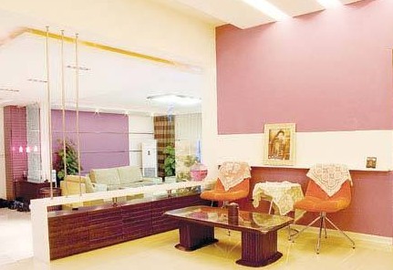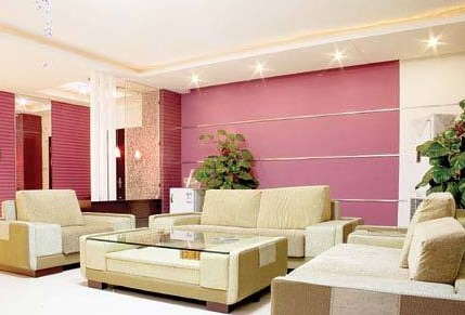 紫色背景墻最常用的地方是沙發(fā)背景墻。用紫色壁紙大面積鋪帖,只在柜式空調(diào)的后面留出相應的白色部分,再用銀色金屬條橫著粘貼在壁紙上,既能保證整體色調(diào)的完整,又不會死板,而且銀色也是一種很高檔的顏色,整體看來很有品位。值得注意的是家具一定要選擇淺色的,不然客廳就會顯得很暗。
