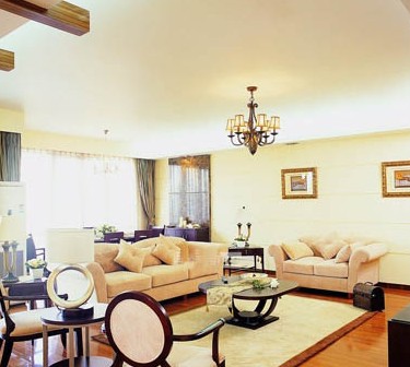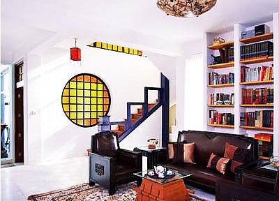 古典與現(xiàn)代看似風(fēng)馬牛不相及的兩種設(shè)計風(fēng)格,在此方案中融合在一起,和諧而不突兀。能夠產(chǎn)生這種效果是因?yàn)樵O(shè)計者將兩者進(jìn)行互補(bǔ)。古典的幽雅在電視機(jī)后面的那一輪紅木墻壁體現(xiàn)出來。現(xiàn)代的簡約則用于沙發(fā) 、窗簾等的選擇上。色彩上,深棕色厚重感與米色的輕柔感形成對比,和諧一致。地上鋪滿鵝卵石、瓶上插著鮮花、柜內(nèi)的瓷器,小至每一個家飾品的搭配也體現(xiàn)設(shè)計師的心思。