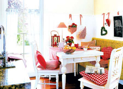 方案三:色澤鮮艷的布藝飾品也會(huì)提升餐廳的圣誕指數(shù),粉紅色的餐布、格子餐墊、餐巾、溫暖的靠墊或墻上的布藝掛飾等都會(huì)烘托出考究浪漫的品位。