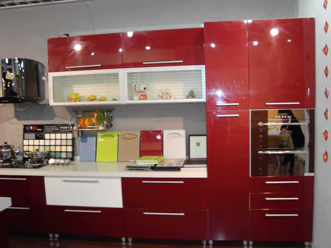 一、實(shí)木貼皮:這樣的廚房家具色彩艷麗、明亮。但是時(shí)間長(zhǎng)了容易翹皮,畢竟它的表皮是貼的,受潮后更容易脫皮。