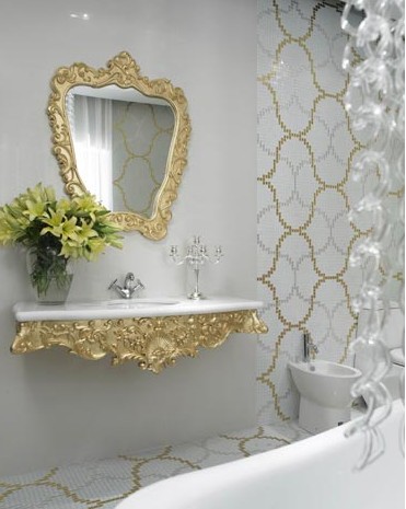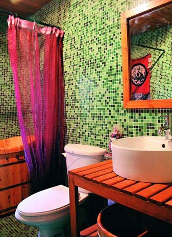 田園風格并不是居室設計的新寵,但是將這一風格融入衛(wèi)浴間還頗為新奇。田園風格中的小碎花、鐵藝飾品、彎角家具“移駕”衛(wèi)浴間后,能夠營造出溫馨、細膩的空間效果。