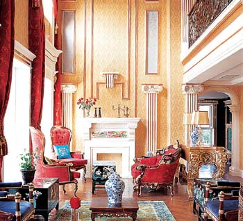 7.不管是如何使用金色,挑選的時候一定要通過很多樣品體會一下大面積使用時的效果以及和房間里其他家具配飾配合的效果,否則容易讓金色太跳。金色壁紙施工的時候要注意接縫的處理,一定要光滑無痕,使柱子成為一個金色柱子,是“體”的概念,而不是柱子或墻面上貼了金粉。