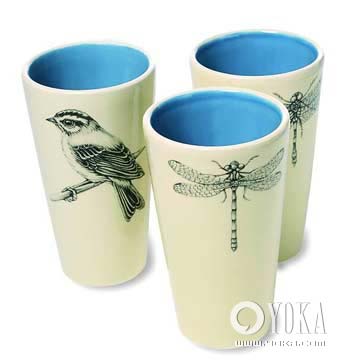 美國(guó)佛蒙特州的藝術(shù)家Laura Zindel將一項(xiàng)18世紀(jì)的印刷術(shù)進(jìn)行了改良,然后把她自己的鉛筆畫大作結(jié)結(jié)實(shí)實(shí)地印在了瓷杯和玻璃杯上,最有趣的是她選擇的內(nèi)容全部是帶翅膀的生物,比如蜻蜓、麻雀。 約¥280/只