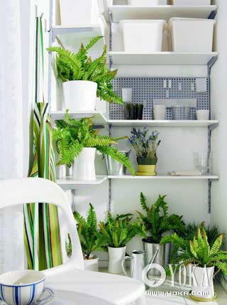 蕨類植物耐陰,適合放在受日照時間較短的陽臺角落。