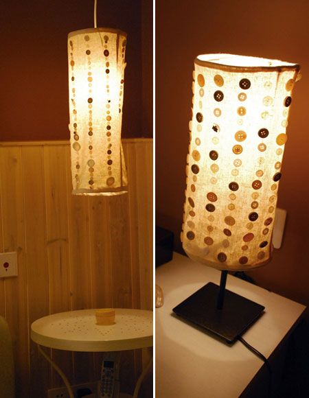 燈飾是營造氛圍必不可少的工具哦,有時候我們也可以DIY燈飾,會不意想不到的效果。用舊紐扣加麻布做的燈罩,既懷舊又時尚。