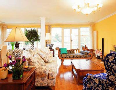 另外,如果客廳是明黃的墻面,也不妨配搭時下最流行的金屬家具。據(jù)廣州華韻裝飾公司風(fēng)格專家介紹,目前國際上流行的鍍K金及鍍黑金工藝,更把金屬家具的檔次和品位推向一個極高的境界??此评溆驳募揖邥r尚卻不失沉穩(wěn),在黃色的襯托下,能很好地體現(xiàn)出優(yōu)雅的品位。