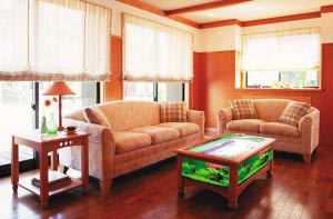 或富麗堂皇,或雍容華貴,或淡雅幽靜,豪宅大房的內(nèi)部裝修無(wú)不在追求個(gè)性的釋放,體現(xiàn)家居生活的樂(lè)趣。但無(wú)論是中西結(jié)合,沿襲古典,還是渲染異域風(fēng)情,都由價(jià)格不菲的各種家私組合而成,雖然傾注了不少心血,但久而久之會(huì)感覺(jué)缺少一些自然元素活躍這個(gè)華貴的生活空間。返璞歸真,崇尚自然,引入自然景觀成為家居布置的時(shí)尚話題,特別是水族造景,成為上層人士品味個(gè)性生活的追求。