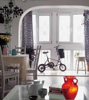 拱門外的陽臺不會讓你一見鐘情卻說不定會讓你流連忘返,碎花藍窗簾、綠色的小植物,簡約小凳,會引得你忍不住要坐過去……