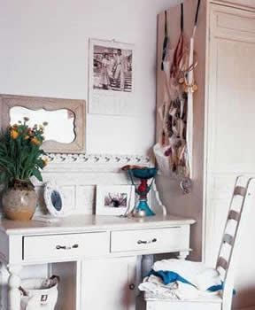 我們不得不佩服她的眼光,這些減去沉重還原本色的白色舊木家具,擺在房間的任何一個角落都很協(xié)調,讓房間流動著一種穿越時空的時尚。