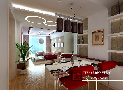 概要: 為了追求臥室空間的浪漫、溫馨,設計師選用溫和的粉紅色作為主調(diào),墻面、頂面、地板和諧搭配。由于陽臺的啞口過寬,空間交流太過充分,所以做了紅色方磚墻柱來分割空間,美化了居室。設計師在主臥室中,利用燈光的變幻淡化了裝飾上的單一性,渲染出一種濃濃的溫情,靜謐、憧憬、充滿夢幻的裝飾畫深深地融入這片溫情中。墻壁上為遮掩管道而做的局部設計,同時起到了照明作用。