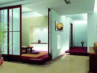 B、在客廳的一角或者沙發(fā)上方的天花板上安裝滑軌,然后像安窗簾一樣裝上厚布,這樣就可以形成一個簡單的私密空間,而且使用方便,起床后收起來即可。