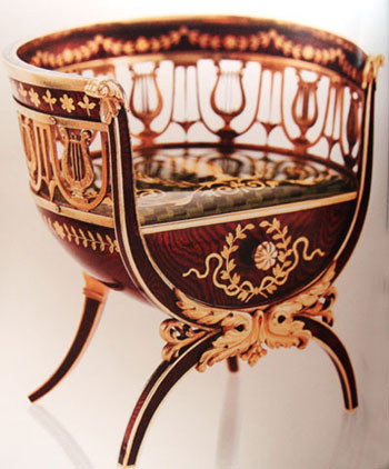 07年4月紐約索斯比(Sotheby´´s)拍賣會(huì)上,一把只有手掌大小的微型椅子,飆到了150萬美元,最便宜的一把也要100萬美元,居然還有人捧場(chǎng)。想當(dāng)年靠為沙皇亞歷山大三世設(shè)計(jì)復(fù)活節(jié)彩蛋一舉成名的Faberge聽到這個(gè)價(jià)格,不知道會(huì)不會(huì)在墳?zāi)估镄π选?