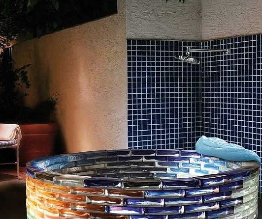 目前市場上流行的玻璃磚大體可以分為兩種,即空心玻璃和手工藝術(shù)玻璃。其中空心玻璃是以燒熔的方式將兩片玻璃膠合在一塊,再用白色膠攪和水泥將邊隙密合,可依玻璃磚的尺寸大小、花樣、顏色來做不同的設(shè)計(jì)。依據(jù)尺寸大小,可設(shè)計(jì)出直線墻、曲墻或不連續(xù)墻等不同的表現(xiàn)方式。