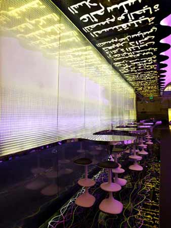 概要: 設(shè)計師KarimRashid完成了迪拜的一個餐廳的室內(nèi)部分,名為Switch。餐廳的主要特色是波狀的墻,還可以不斷的變色。頂面的裝飾是發(fā)光的***字句。設(shè)計師Rashid說:“這個強的靈感是來自于***字母S,關(guān)鍵是他的側(cè)邊?!疭hin’就像是希臘的西格瑪(傳說中的西格瑪---∑)”餐廳的波狀墻面想給人帶來的是強烈的對稱視覺,環(huán)繞在這個空間中。