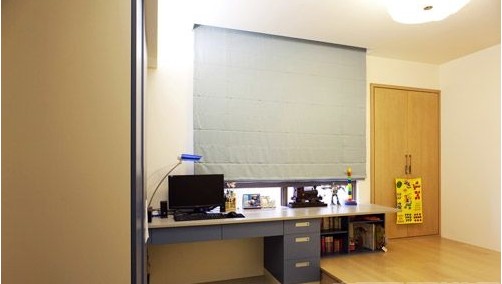 采用地板架高作為床組使用,書桌臺(tái)面延伸至床臺(tái),延伸更多的收納技能,藍(lán)色海洋風(fēng)的飽和色彩,讓小朋友的個(gè)人天地活潑奔放又不失穩(wěn)重。