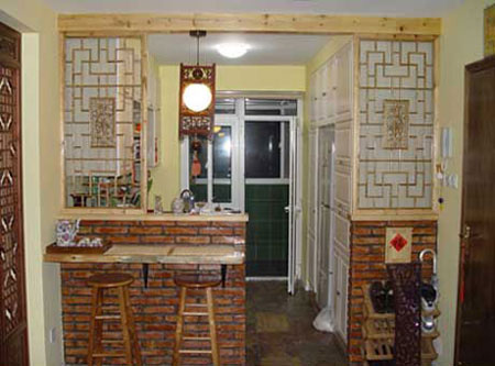 4、廚房里的矮柜最好做成抽屜:推拉式這樣方便取放,視覺(jué)也較好。而吊柜一般做成30到4Ocm寬的多層格子,柜門(mén)做成對(duì)開(kāi),或者折疊拉門(mén)形式。
