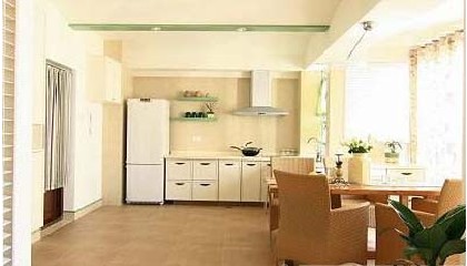 開放式廚房是絕大多數(shù)別墅戶型、復(fù)式戶型采用的設(shè)計(jì)基調(diào),將空間視野在可能的范圍內(nèi)可能的放到最大。