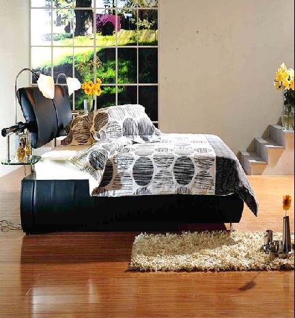 現(xiàn)代簡約、鄉(xiāng)村休閑而又大氣非凡;床頭功能與實用相結(jié)合,配上投影系統(tǒng),輕松享受家庭影院;層次分明,色彩搭配圖案別致,黑、白、灰的結(jié)合帶給主人寧靜的睡眠感受;金屬腳部支撐,增加其空氣對流;功能茶幾與床頭相映成趣,渾然天成。