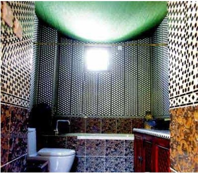 另外值得注意的是衛(wèi)浴間的面積大小、通透與否決定著馬賽克色彩的選擇。通常面積較大的衛(wèi)生間適合選擇氣勢(shì)磅礴的馬賽克拼貼圖案。如流瀑式深淺相間的條紋馬賽克就非常適合空間敞亮的衛(wèi)浴間。而面積較小的衛(wèi)浴空間則盡可能選擇清淡的配色,這樣可以避免衛(wèi)浴間顯得過于擁擠。同時(shí),小花紋的選擇也能給小型衛(wèi)浴間增加一些靈氣,彌補(bǔ)小型衛(wèi)浴間采光和通風(fēng)相對(duì)不足的弱點(diǎn)。