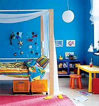 靜謐的藍色墻面點綴以貝殼海螺等飾物,是藝景盛裝飾設(shè)計師對整個空間的設(shè)計寫意,整個空間彌漫著海洋的氣息,本案是一個面積不大的兒童房,因為空間比較緊湊,所以,設(shè)計師在進行規(guī)劃時力求在滿足其使用功能的前提下,追求簡約、明快,著重從顏色搭配、飾物、家具來美化空間。藍色的墻面,淺木色復(fù)合木地板,配以淺木色的兒童床,床頭及上方配以輕柔的白紗織物進行裝飾,小而輕巧的兒童專用寫字桌可隨意變換位置,整個空間設(shè)計溫馨舒適,并具有較強的靈活性。