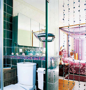 2、材質(zhì)要素:亮片珠簾為衛(wèi)浴間營造嫵媚浪漫。