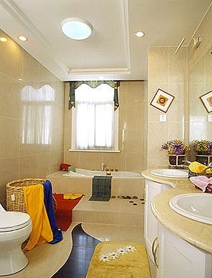 地磚鋪設(shè):地磚鋪設(shè)的要領(lǐng)有三:第一,要有約百分之一的泄水坡度,斜坡朝向地板下水口;第二,地磚接縫要粗細(xì)一致,并且和壁磚接縫要對(duì)齊;第三,浴缸前墻采用磚砌,貼磁磚時(shí),地磚最好先貼至墻下方,然后再貼壁磚,以避免產(chǎn)生破口。