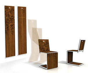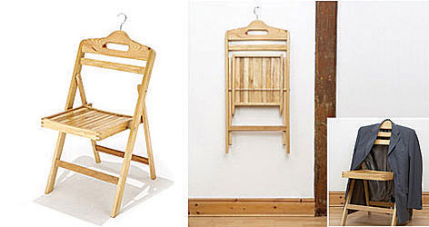 在日常生活中,折疊式椅子隨處可見,因為它可以有效地節(jié)約寶貴的空間。不過對于家里空間過于局促的朋友,即便是折疊起來的椅子,恐怕還是不能完全令人滿意,那何不把椅子掛到空無一物的墻上去呢?于是設計師就將椅子的椅背直接設計成了衣架的樣子,平時可以直接將衣服掛在上面,當椅子不用時,還可以像掛鉤一樣將椅子直接掛在墻上,多方便呀!