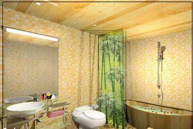 主衛(wèi)生間:采用防水的壁紙,使浴室不再是冷冰冰的地方,增添新意的同時(shí)節(jié)省了造價(jià)。裝修知識(shí) 裝潢m.sukhothaiessex.com