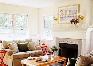 概要: 一個圓形的會話區(qū),能使客廳顯得親密富有人情味。明亮的桔色和黃色,加上中性的裝飾配件,這些細(xì)節(jié)的點(diǎn)綴,讓狹小的空間顯得自然有序?! ∫桓庇材镜匕?、一個舒適的壁爐,再加上綠白相間的經(jīng)典搭配,這就是一個標(biāo)準(zhǔn)的時尚家庭裝修方案。當(dāng)然,你也可以靈活地放一些自己喜歡的時尚元素。一些干凈簡潔、線條清晰的物品都可以放置進(jìn)來。