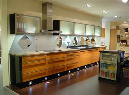 1、L型:將清洗、配膳與烹調(diào)三大工作中心,依次配置于相互連接的L 型墻壁空間。最好不要將L 型的一面設(shè)計(jì)過長,以免降低工作效率,這種空間運(yùn)用比較普遍、經(jīng)濟(jì)。